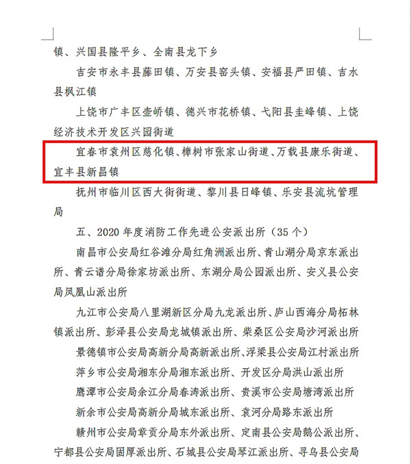 2020年度消防工作先進(jìn)鄉(xiāng)鎮(zhèn)(街道、管委會(huì))、管理處(局)